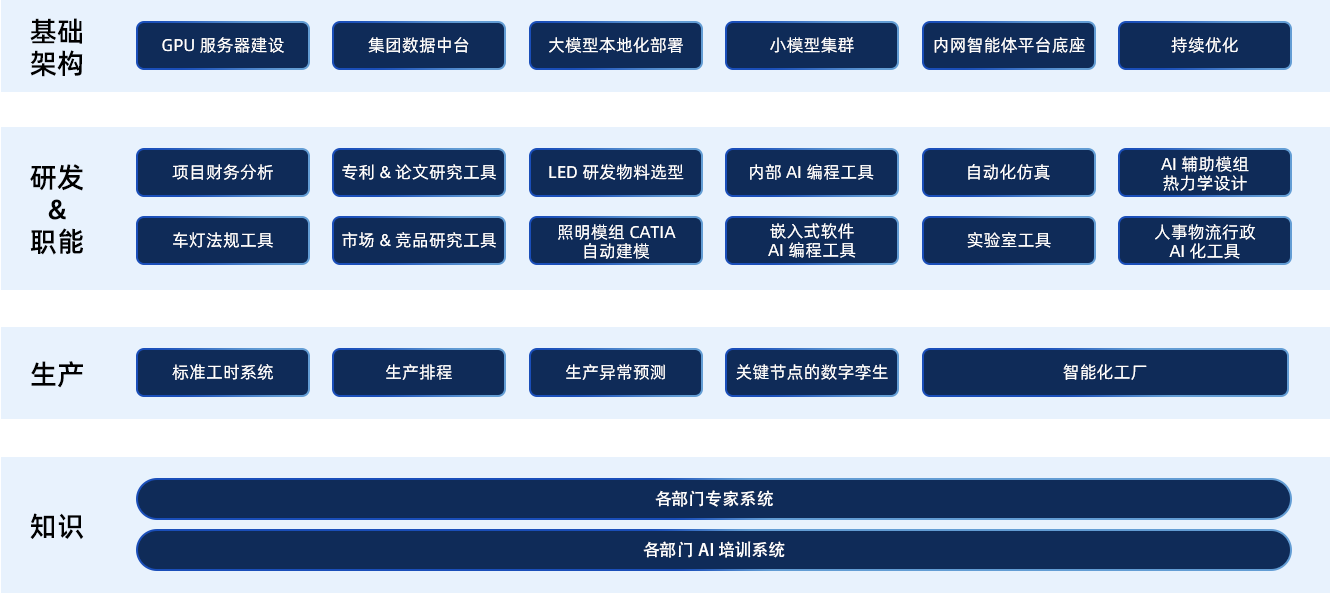公司全面推动人工智能 AI 在产品技术研发、生产制造、运营管理等方面的应用,加强智能化制造能力,采用先进数据化系统对人机料法环等进行管理控制,保证产品生产的一致性和稳定性,同时利用 AI 手段对数据进行分析,优化生产流程,利于产品追溯,提升整体的产品制造良品率。